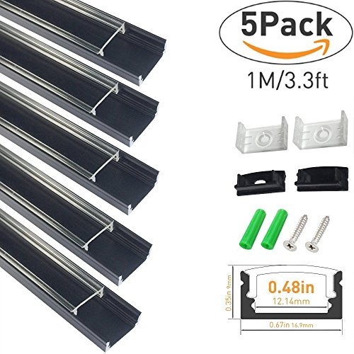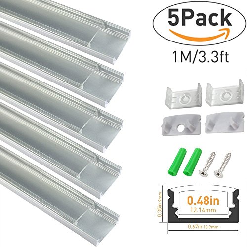 Package includes: 5x 1m/3.3ft per segment with cover (x5), end caps (x10) and mounting clips (x10); For additional end caps please search B01GP872X8; Extra mounting clips please search B01GP873LY on Amazon