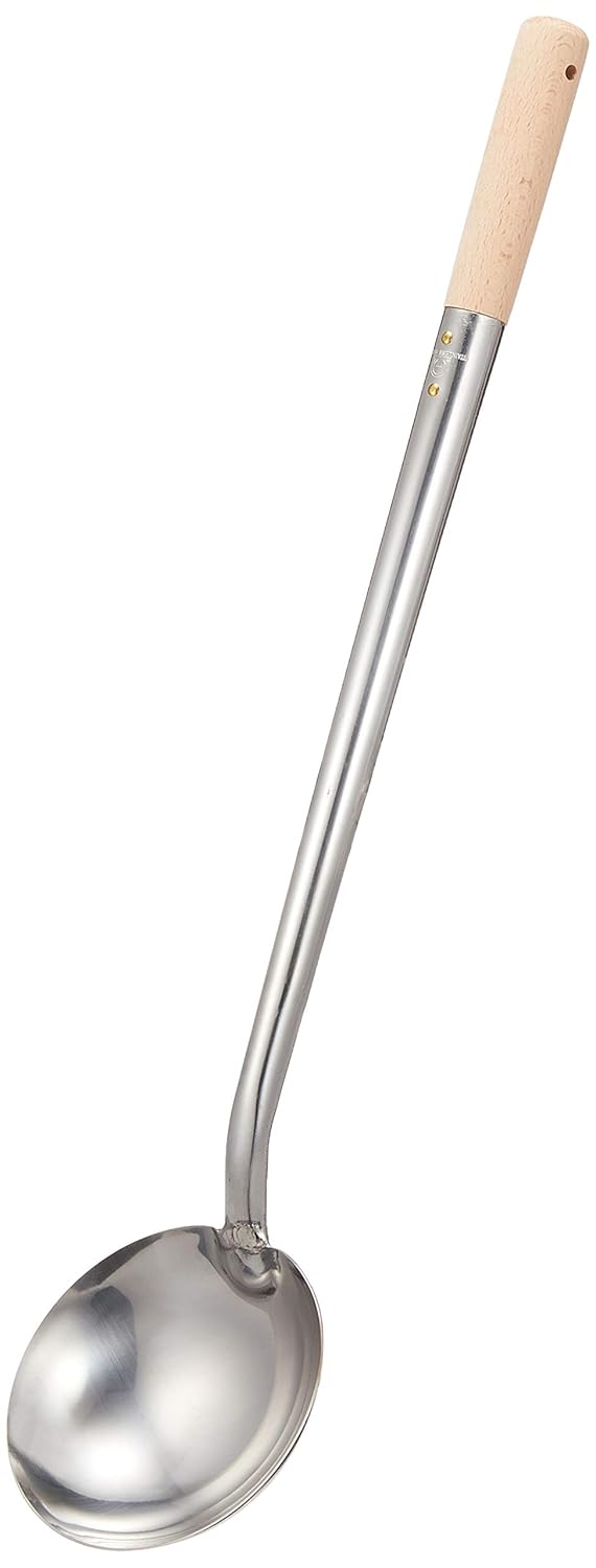サイズ:直径107×柄長375mm 重量:220g 素材・材質:本体/18-0ステンレス ハンドル/天然木 原産国:日本 容量:約140cc