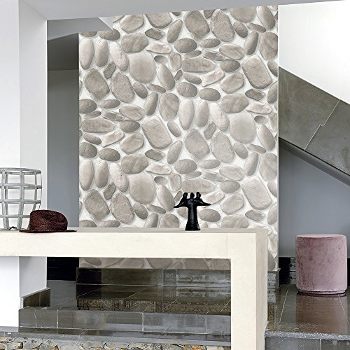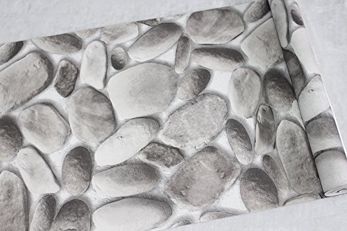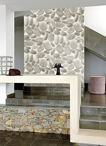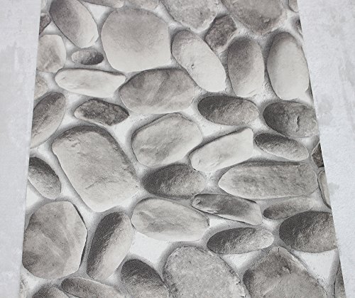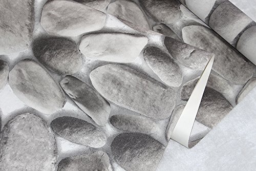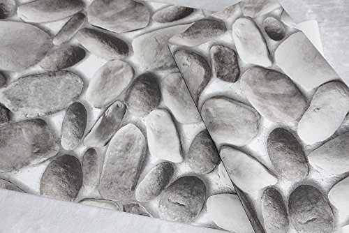 HaokHome 457003 Modern Faux Stone Wallpaper Roll Gray/Off White 3D Cobblestone Realistic Paper Room Wall Decoration 20.8" x 393.7"