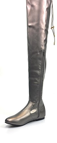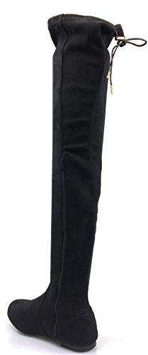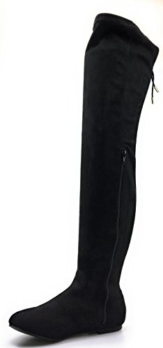 Binding : Apparel Product Description These flat over the knee boots feature slightly stretchy, faux suede and an approximately 12.5 inch calf circumference. A drawstring tie at the top of the shaft will keep these boots in the right place, and a half inside zipper closure will help you to put them on easily. Some people report that these boots run slightly small, order a half size bigger for comfortability. 0