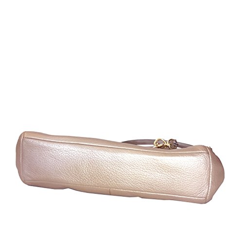-. Feature : Pebble leather / Inside zip, cell phone and multifunction pockets / Zip-top closure, fabric lining / Handles with 5 1/2" drop. 13 1/2 (L) x 8 1/2 (H) x 3 1/4 (W) / Longer strap with 22 drop for shoulder or crossbody wear