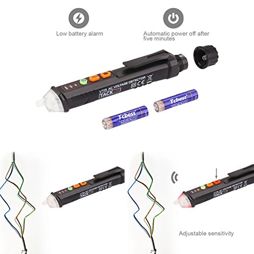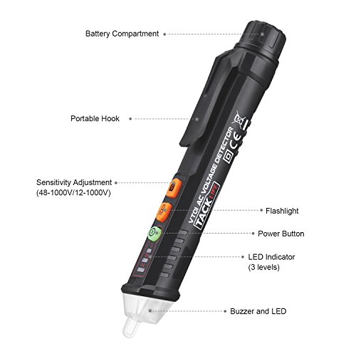 Tacklife VT01 Classic Non-Contact Voltage Tester Dual Range 12V-1000V/48V-1000V with LED Flashlight & Alarm Mode & Live/Null Wire Judgment &Adjustable Sensitivity