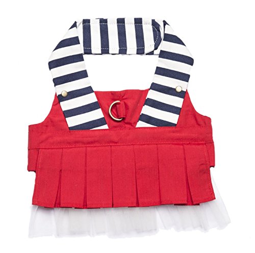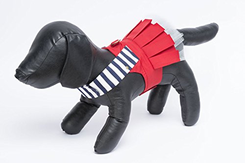 Studio : DTUS, Inc. Publisher : DTUS, Inc. Binding : Misc. Product Description Beginning Summer reminds you the blue sky, white coastline, purple villages and vineyard farms. It is a happy place to spend holidays. Orange Blinks Apparel Harness Collection - Bon Voyage, Pleated Skirt with Veil - With D-ring slot to hook up leash With Velcro fastening, With Pleated Skirt Removable Veil. Materials - (Blue WhiteStripe): 100% cotton; (Red Navy collar):35% cotton, 65% polyester; (Veil): 100% Polyester; (Lining): 35% cotton, 65%polyester; Color: Blue White Strip with Red Skirt. Size: XS/S/M. 0