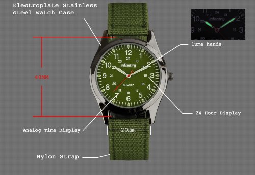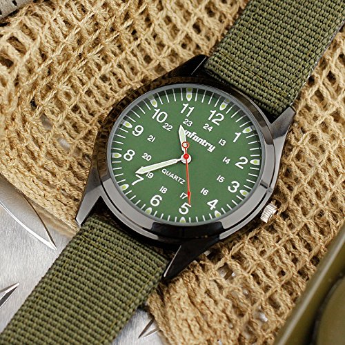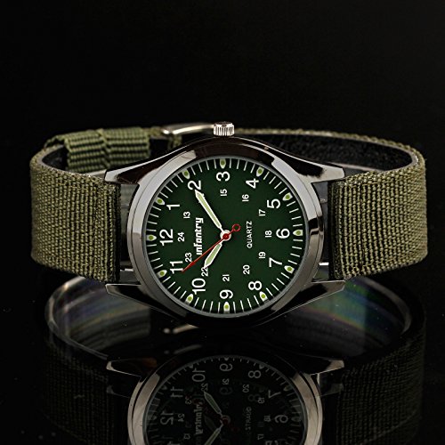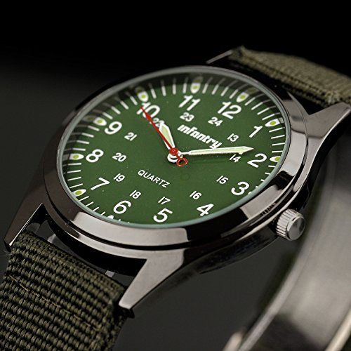 -. Title : INFANTRY Mens Luminous Military Army Analog Wrist Watch 12/24Hr Green Nylon Band, GLow In The Dark