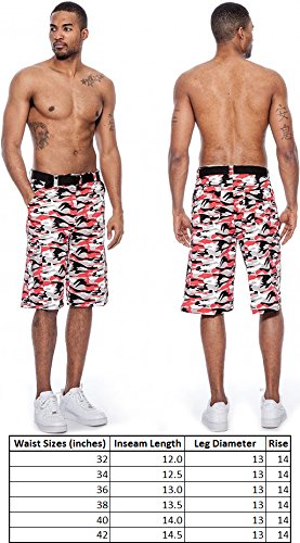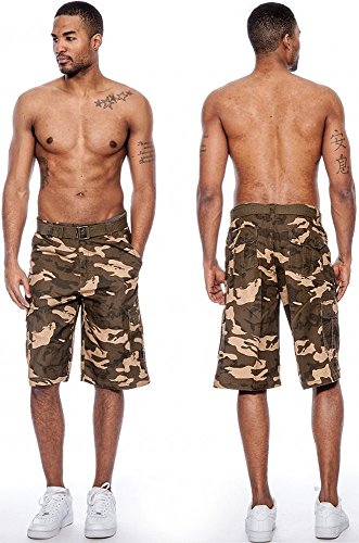 -. Feature : BELT INCLUDED: Comes with belt that compliments the chosen camouflage color. Simple hook and eye style belt. / CARGO: Enjoy those popular extra pockets on each side of these shorts. Carry around your everyday items without it being uncomfortable. / QUALITY: Made from 55% Cotton and 45% Polyester, the quality and comfort awarded to these shorts will make it a favorite item to wear. / POCKETS: The pair of shorts has 6 different pockets to store your belongings. Two in the rear, two on the sides, and a classic two in the front. / SIZE and COLOR: Choose from over 6 different sizes and colors to find the pair or pairs of shorts that best suit the outfits you like.