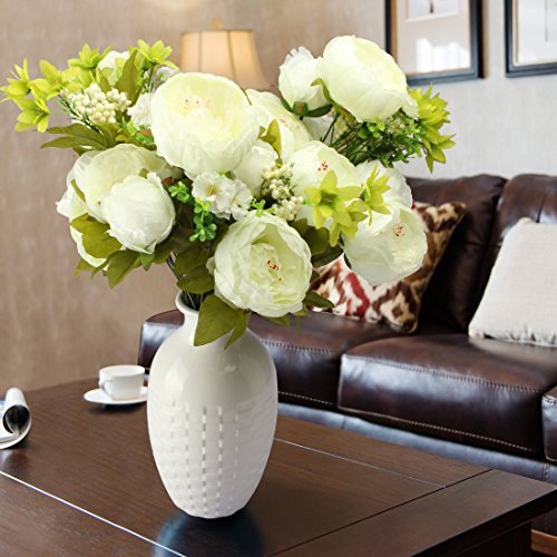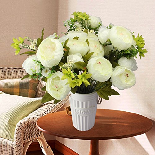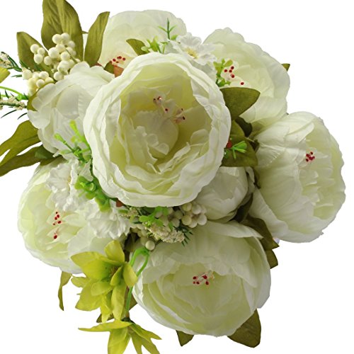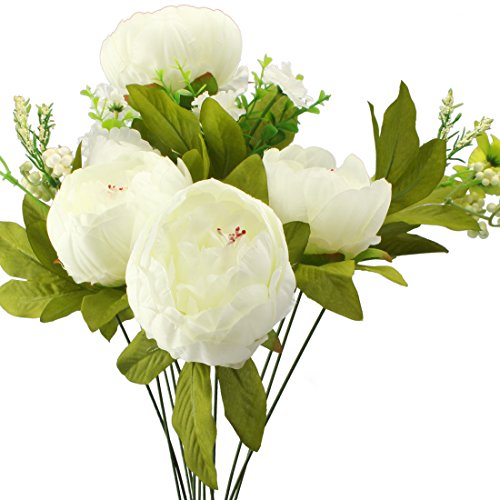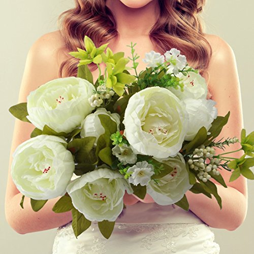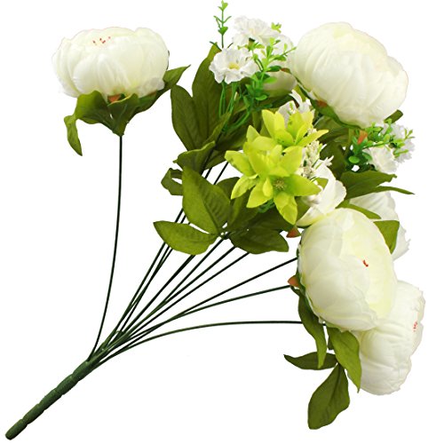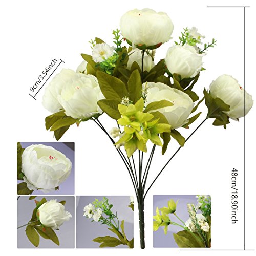 Fionat Spring Artificial Peony Bouquet Silk Flower Arrangement Faux Flower Home Wedding Decor (Pure White)