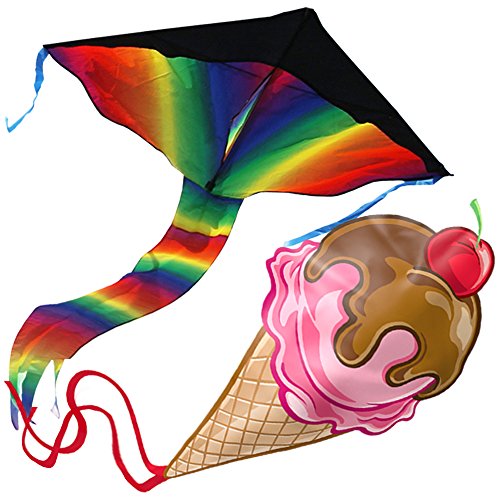 aGreatLife Huge Rainbow Kite and Ice Cream Kite: Double the Fun and Adventure with Two of the Best Selling Easy Flyer Kites in One Amazing Bundle - Perfect Gifts for Kids and Adults