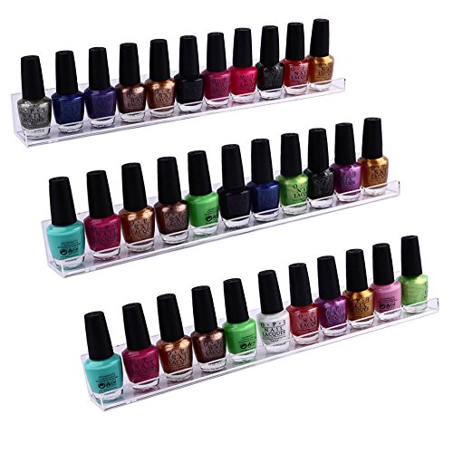 -. Binding : Misc. -. Brand : Makartt -. Color : Clear -. EAN : 0799443826284 -. Feature : TRANSPARENT NAIL POLISH RACK - The clear nail polish organizer makes you find the colors and bottles you want easily but doesn't take up valuable space on your dresser or vanity. / DETACHABLE AND EASY TO CARRY - With its light weight ,It can be mounted on any place separately or together, like linen closet, bathroom cabinet for home and garden use , What's more ,you can mount on the wall by a single person ,without any noticeable effort. / SPACE SAVER - Classify the nail polishes and essential oils easily, makes linen closet less cluttered , 3 long Individual Shelves (15 inches) fits approx 33-45 standard size bottles (Depend on your bottles )(Internal shelf width 1.5 inches), it can be great a space saving option. / STURDY DURABLE ACRLIC MATERIAL - The 5mm extra thick acrylic 3 shelves nail polish organizer are very sturdy. / GREAT AND NICE GIFT FOR GIRLS AND MOTHERS - The well-made, good-looking , sturdy nail polish rack not only be a ideal gift for girls with solving the problem of misplacing nail polishes. but also perfect for salon,home and garden use. -. IsAdultProduct : 0 -. Label : MAKARTT -. Manufacturer : MAKARTT -. MPN : 799444000000 -. PackageQuantity : 1 -. PartNumber : 799444000000 -. ProductGroup : Health and Beauty -. ProductTypeName : HEALTH_PERSONAL_CARE -. Publisher : MAKARTT -. Size : 15"(L) x 2"(H) x 1.7"(W) -. Studio : MAKARTT -. Title : MAKARTT® 3 Tier Wall Mount Acrylic Nail Polish Rack Display Holder Organizer - Hold 33-45 Bottles -. UPC : 799443826284