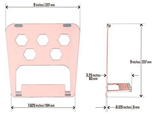 -. Feature : ERGONOMIC LAPTOP STAND: For laptops between 10-15 inches, this portable laptop stand elevates the keyboard and screen to an ergonomically beneficial angle so you can type and read more comfortably and folds down flat to easily carry easily in a computer backpack or case / SLEEK AND LIGHTWEIGHT LAPTOP STAND: Ideal for people who spend hours at a time on a computer and experience neck, hand and arm strain, this folding laptop desk adjusts to your desired height and gives you a place to hide cables and chargers for a cleaner looking desktop / ELEGANT HEAVY-DUTY STURDY DESIGN LAPTOP STAND: Constructed of polished, high-strength aluminum that will not bend or break, safely holds MacBooks, Chromebooks and other laptops and includes a sleek polished aluminum silver finish that blends nicely with most laptop frames / LAPTOP STAND WITH BUILT-IN PASSIVE COOLING PAD: Allows better airflow than conventional plastic or wooden laptop risers with integrated honeycomb cooling vents for optimum air flow that helps keep laptops cooler without the need of a noisy fan or other cooling device / NO-SLIP DESIGN LAPTOP STAND: This foldable and portable keyboard lift includes silicone rubber feet and pads that keep your computer from moving or wobbling while typing, pling in cables or removing media from the USB ports