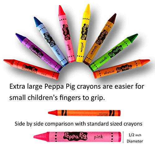 8 easy to grip Jumbo Peppa Pig crayons measuring 1/2 inch in diameter.