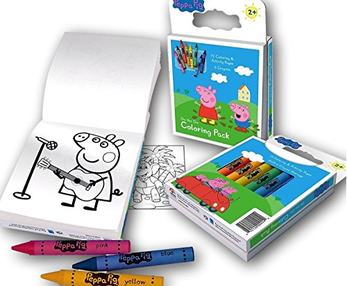 72 coloring and activity pages. 8 easy to grip Jumbo Peppa Pig crayons measuring 1/2 inch in diameter. Coloring pack features built-in storage for crayons making cleanup easy. 1 Large Quality Matte Finish Fun Elephant Coloring Sticker. Hours of fun for any Peppa fan, great for travel, family gatherings, gifts, go packs, birthdays and more.