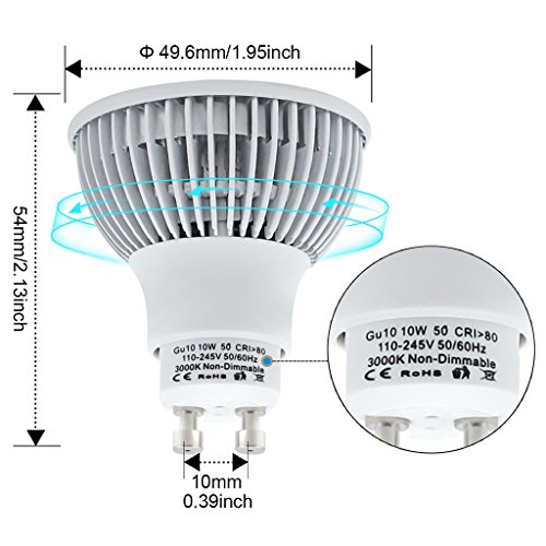 ✪ Easy Installation: Standard MR16 shape with GU10 base (54*49.6mm/2.13*1.95inch), simply replace traditional halogen incandescent bulbs