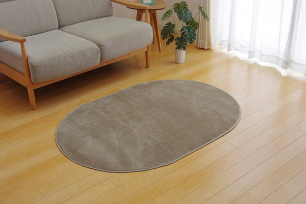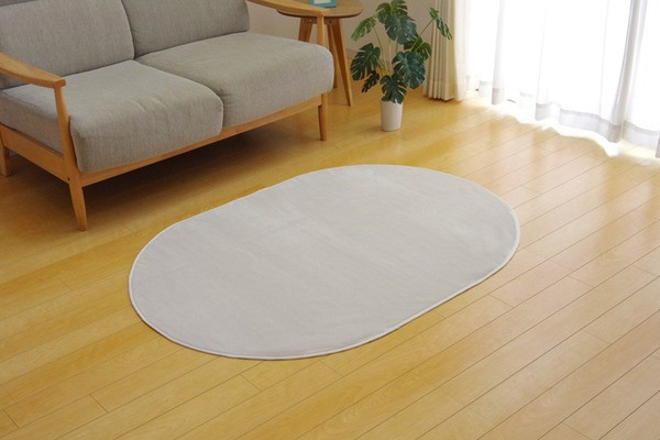 【商品名】ラグマット カーペット だ円 洗える 抗菌 防臭 無地 『ピオニー』 ベージュ 約100×140cm楕円 (ホットカーペット対応)