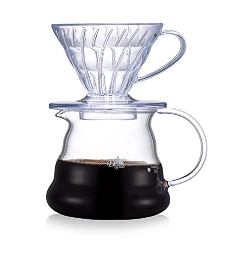 -. Title : Diguo V60 Wave Range Manual Drip Glass Server Coffee Maker Coffee Pot (600ml with 3-4 Cup Dripper)