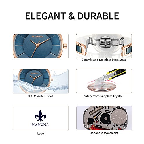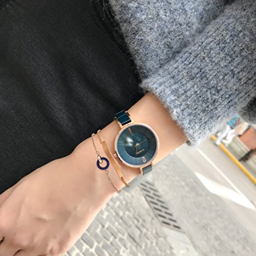 Minimalist design:Ceramic link without stainless steel link in the middle makes the whole design more integrated. The bracelet brings a little bit sparkly element to the whole watch set . This is a Perfect Gift Set, includes: - An Elegant Stainless Steel Watch.