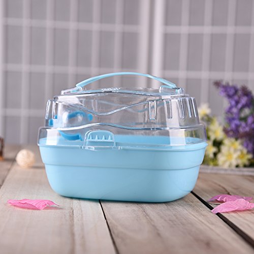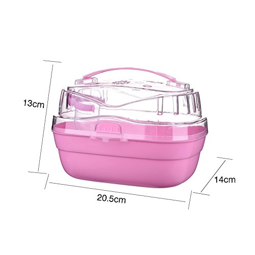 Transparent palstic cage is convenient to observe your pet and easy-cleaning; Portable carrier is convenient to take out for traveling; The built-in water bottle is convenient to feed your pet when you are travelling outside; The holes let air in and out,make the cage breathable; Packing list:hamster cage*1. 0