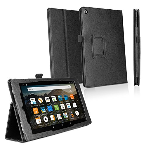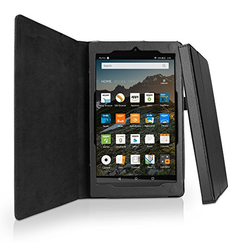 Amazon Fire HD 8 Case, BoxWave [Folio Stand Case] Synthetic Leather Cover with Viewing Stand for Amazon Fire HD 8 - Nero Black
