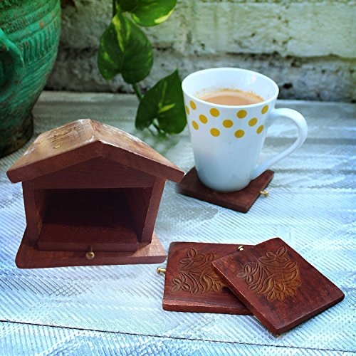 Studio : IndiaBigShop Publisher : IndiaBigShop Product Description Beautifully handcrafted in Sisam wood, set of 6 tea coasters with a holder! The tea coasters comfortably fit in the space. Wooden coasters will enhance the decor value of your dining table. Each coaster is decorated with unique design. Move the curser on the image above to see quality craftsmanship in every detail. Traditional and hereditary wood artisans of Saharanpur in north India have handmade this tea coasters and holder set using skills passed on to them through several generations. While these tea coasters are extremely functional, they also look like an object the art at your home or office desk. All in all, this tea coasters and holder set is an excellent gift to receive as well as to give. 0