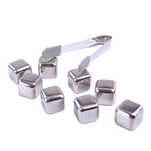 -. Title : HDE 8 Piece Stainless Steel Whiskey Stones Reusable Ice Cubes Chilling Rocks for Drinks and Beverages
