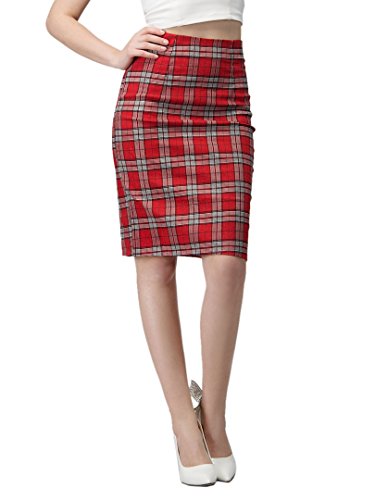 -. Title : Choies Women's Polyester Plaid High Waist Multi Mid Calf Back Slit Pencil Skirt