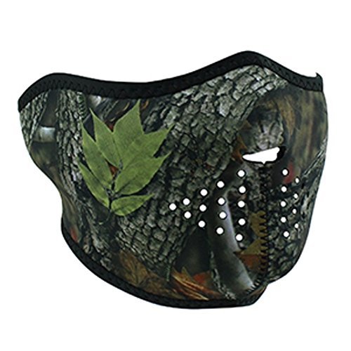 -. Title : Oak Leaf Leaves Mossy Tree Camo Camoflauge Reversible to Black Neoprene Half Face Mask