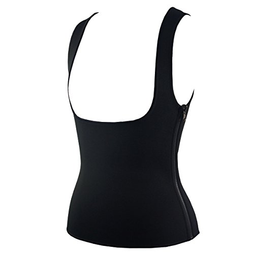 -. Feature : The Sweat Enhancing Thermal Vest intensifies perspiration in your core by up to 3 times more than regular gym-clothing! / The vest will fit snly around your midsection, working its magic from your shoulders, down to your waistline. / It gives you back support, and guarantees a correct posture during your workouts. / The vest is easy to put on, and stays on with no sliding, thanks to the wide straps and zip-closure. / Side zipper, please refer seller's own size chart to select your size.