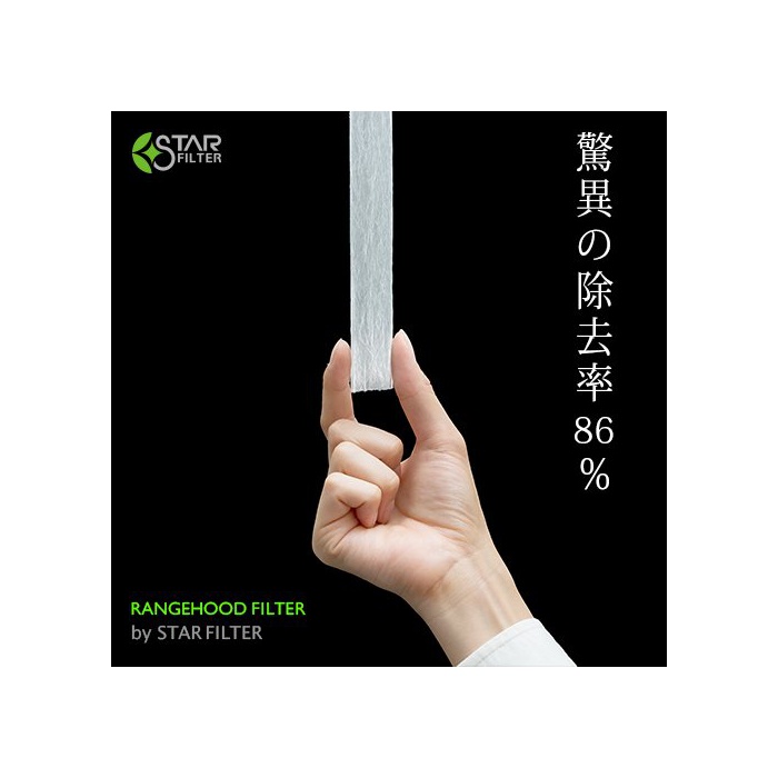 스타 필터는 고품질 레인지 후드 필터를 2015년 발매 개시.종래의 불직천과 같이 면을 압축한 소재는 아니고, 불연성의 유리 섬유를 특수3 층구조로 하고, 키친의 유연을 보다 많이 제거할 수 있는 바와 같이(하도록) 개발 된 소재입니다.