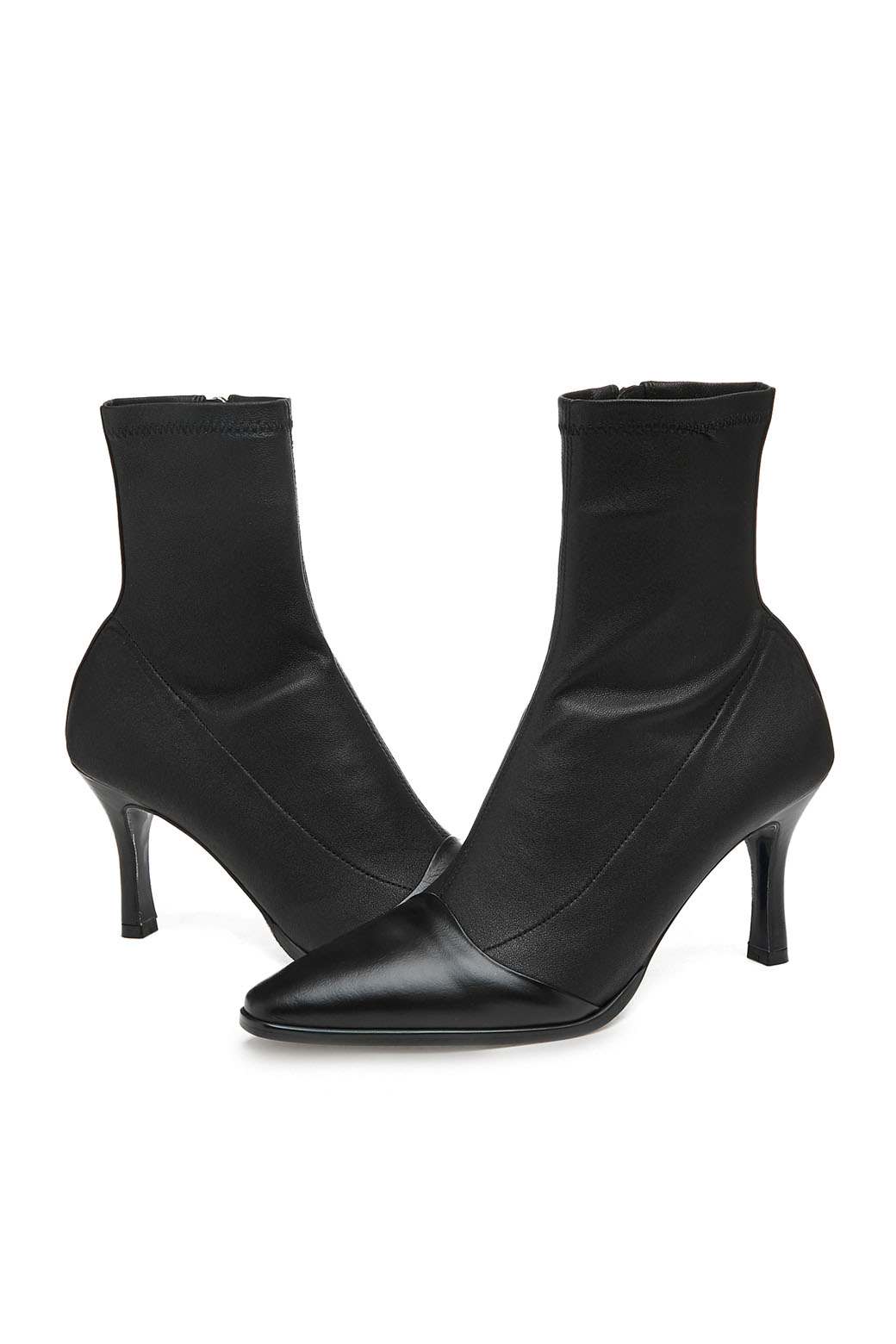 - 물결 앞코라인으로 포인트를 준 스판 앵클 부츠.- 발목을 타이트 하게 감싸주는 슬림한 쉐입 스타일.- 2가지 타입의 가죽 콤비가 시크한 느낌을 주는 디자인.- 데님 부터 세미 정장까지 웨어러블하게 코디 가능한 아이템.
