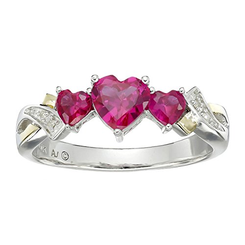 -. Feature : Twisted, Two-Tone Band / 1 5/8 ct Heart-Cut Created Rubies / Round-Cut Diamond Accents / Sterling Silver & 14K Gold / Face Measures 1/4 Inches in Width