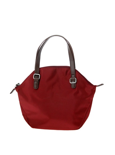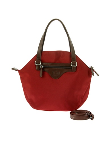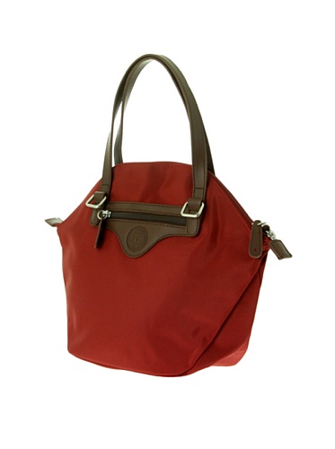 LAMARTHE Ladies Bag Metropolis Red Tote With Brown Leather Trim Compact Women's Handbag Travel Bag Foldable Shoulder Bag