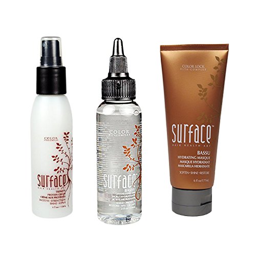 -. Feature : Bundle - 3 Items : Surface Bassu Hydrating Masque 6 Oz & Trinity Protein Cream, 4 Oz & Hydrating Oil Shine Protect Color Lock Vita-Complex, 2 Oz / Surface Hydrating Masque 6 Oz. : Life for Dry Hair, Maximum Moisture, Seals Color, Sun & Environment Protection. / Surface Trinity Protein Cream 4 Oz : / Surface Trinity Protein Cream 4 Oz : Strengthen, Shine, and Repair. / Surface Bassu Hydrating Oil Shine Protect Color Lock Vita-Complex 2Oz : Intensify Shine, Seals Color, and Define Style.