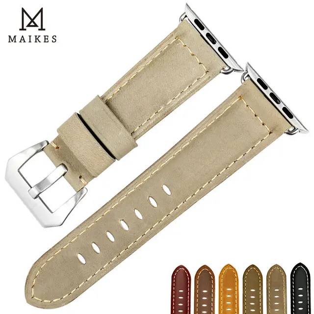 | [해외]MAIKES 새로운 빈티지 누벅 가죽 시계 스트랩 팔찌 팔찌 애플 시계 밴드 42 미리메터 38 미리메터 실버 버클 iwatch 손목 |
