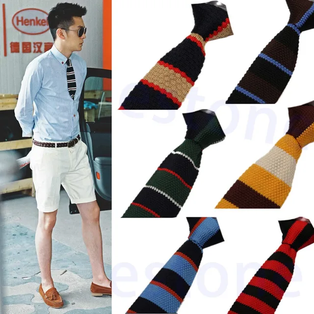 | [해외]새로운 디자인 패션 남성 브랜드 슬림 디자이너 니트 넥타이 목 넥타이 Cravate 좁은 스키니 넥타이 스트라이프 넥타이 |