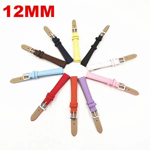 도매 50 개/몫 12 미리메터 PU 정품 가죽 시계 밴드 시계 스트랩 10 색 121701