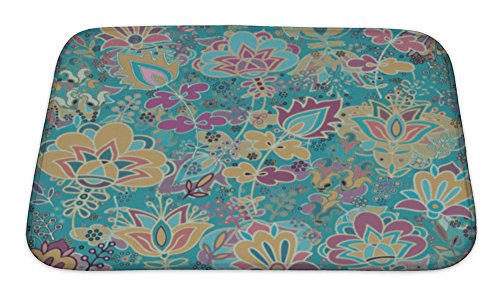 Gear New No Slip Microfiber Memory Foam Floral Pattern Bath Rug Mat, 24" X 17"