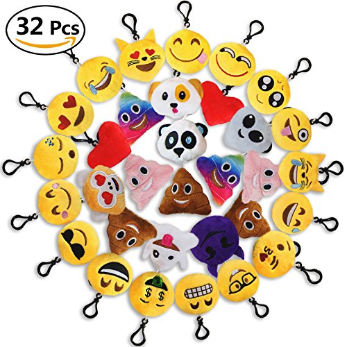 Package Includes: 32 x Pawliss 2" Emoji Plush Keychains