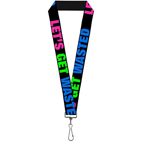 -. Binding : Apparel -. Brand : Buckle Down -. Department : unisex-adult -. Feature : This lanyard is made out of stretchy nylon, and has a stainless steel clip to easily detach your keys / Show off your favorite style / The lanyard is 1.0 inches wide, and a standard length -. Label : Buckle-Down -. Manufacturer : Buckle-Down -. MPN : LY-1.0-W31264 -. NumberOfItems : 1 -. PackageQuantity : 1 -. PartNumber : LY-1.0-W31264 -. ProductGroup : Apparel -. ProductTypeName : ACCESSORY -. Publisher : Buckle-Down -. Studio : Buckle-Down -. Title : Buckle-Down Lanyard - 1.0" - Let's Get Wasted Black/pink/green/blue Accessory