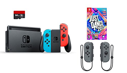 -. Title : Nintendo Switch 4 items Bundle:Nintendo Switch 32GB Console Neon Red and Blue Joy-con, 64GB Micro SD Memory Card and an Extra Pair of Nintendo Joy-Con (L/R) Wireless Controllers Gray,Just Dance 2017