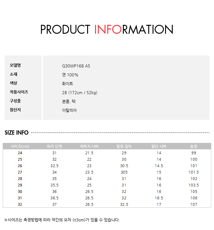 사이즈 사이즈 : 24,25,26,27,28,29,30,31,32