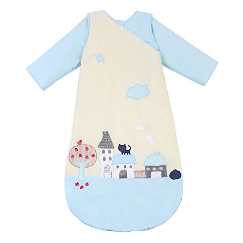 Feature : This sleeping bag comes in three sizes--Size 90cm: suitable height is 60-90cm/23.62-35.43inch; Size 105cm: suitable height is 75-105cm/29.52-41.33inch; Size 120cm: suitable height is 90-140cm/35.43-55.11inch. / This sleeping bag has two different thickness: the quilted cotton sleepbag is fit for use in spring and autumn(good when the room temperatures around 20 degrees); the thick cotton sleepbag is fit for use in fall and winter(good when the room temperatures / Our baby sleeping bag is an 100% cotton sleeping bag with removable arms and zipper on the bottom, which is more convenient for baby and you. / Clever shoulder make placing a sleeping or standing baby in the sleep nest a cinch / When you sleep, your baby sleep, this baby sleeping bag can give your baby a warm environment in which they can sleep better and won't get sick or catch cold so easily.