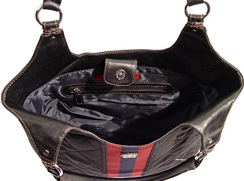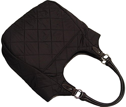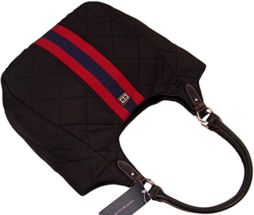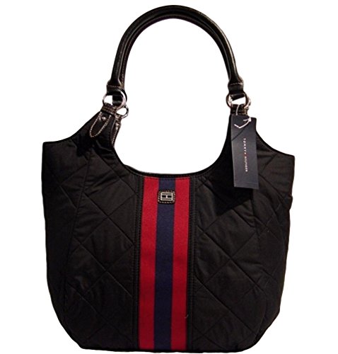 -. Brand : GUESS -. Color : Black -. Department : womens -. EAN : 0715676114271 -. Feature : Quilted nylon fabric with faux lether trim / Top snap closure; Silver-tone hardware / Back slip pocket / Interior features zip pocket & 2 slip pockets / Handle drop: 10"; Dimensions: 15" W x 12" H x 4.5" D -. PackageQuantity : 1 -. ProductGroup : Shoes -. ProductTypeName : HANDBAG -. Size : Large -. Title : Women's Tommy Hilfiger Quilted Large Tote Bag Handbag Purse (Black) -. UPC : 715676114271