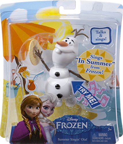 - Feature : Sing along with Olaf the snowman from the Disney movie Frozen! / Olaf doll will break out in a portion of his signature song from the movie, "In Summer", by pressing the button on his chest / He'll also say some of his funniest phrases from the movie! / As the music plays, kids will have fun acting out the movie moment when Olaf shares his dreams of experiencing summer with friends Anna and Kristoff / A great gift for Disney's Frozen fans!