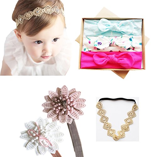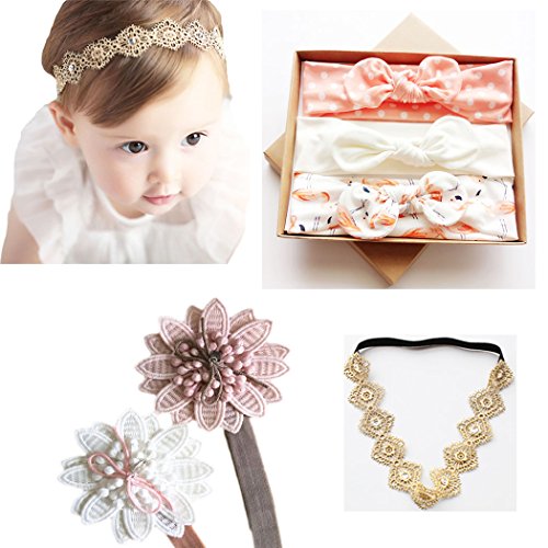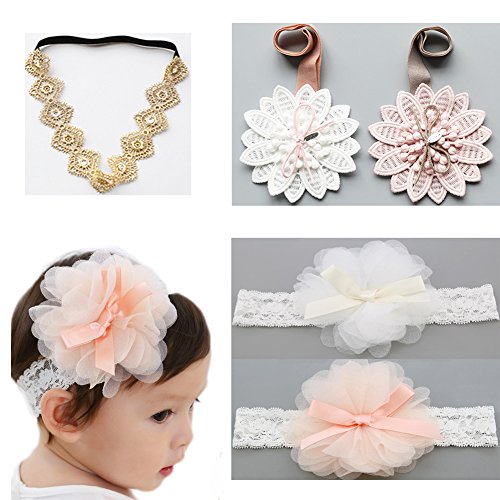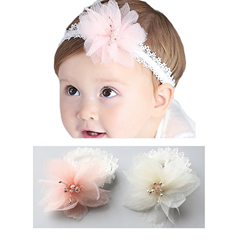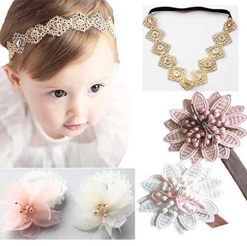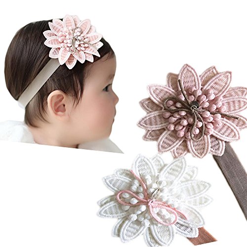 | DANMY Baby Girl Super Stretchy Headband Big Lace Petals Flower Baby Hair Band Newborn Hair Acce... |