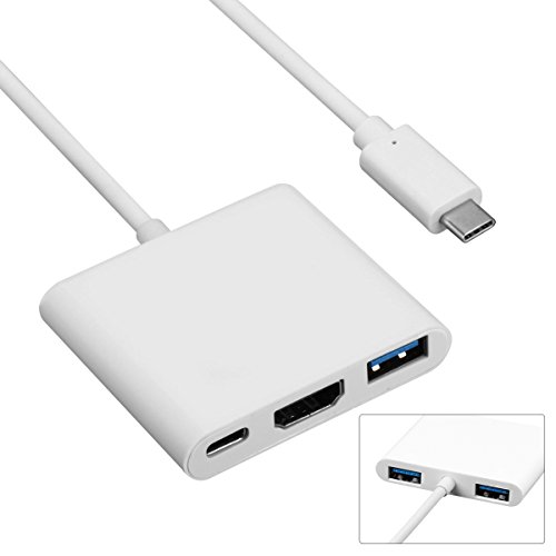 -. Feature : The USB-C Digital AV Multiport Adapter lets you connect your MacBook with USB-C port to an HDMI display, while also connecting a standard USB device and a USB-C charging cable.;This adapter allows you to mirror your MacBook display to your HDMI-enabled TV or display in up to 1080p HD. / USB-C USB 3.1 Type C to HDMI Digital AV and 3 USB 3.0 and Female Charger Adapter;for New Macbook Pro / It also outputs video content like movies and captured video.;Simply connect the adapter to the USB-C port on your MacBook and then to your TV or projector via an HDMI cable (sold separately). / Use the standard USB port to connect devices such as your flash drive or camera or a USB cable for syncing and charging your iPhone, iPad, or iPod. You can also connect a charging cable to the USB-C port to charge your MacBook.