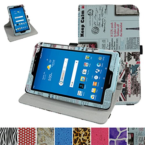 AT&T Trek 2 HD Rotating Case (Model 6461A),Mama Mouth 360 Degree Rotary Stand With Cute Lovely Pattern Cover For 8" AT&T Trek 2 HD 8 inch 4G LTE Android Tablet 2016,Newspaper