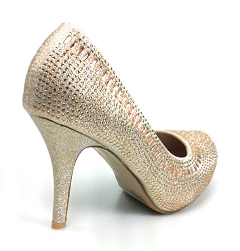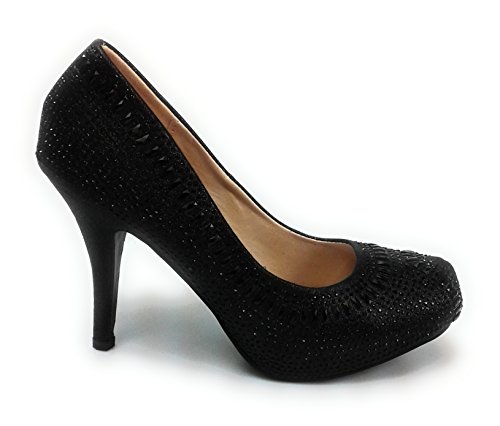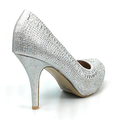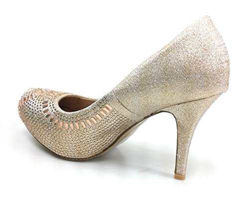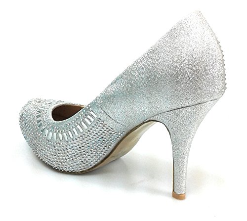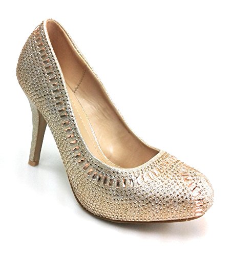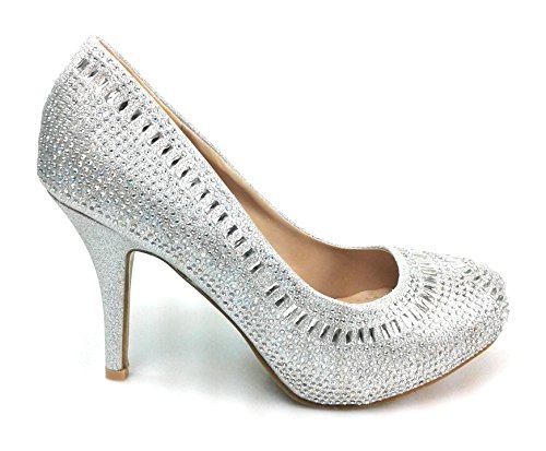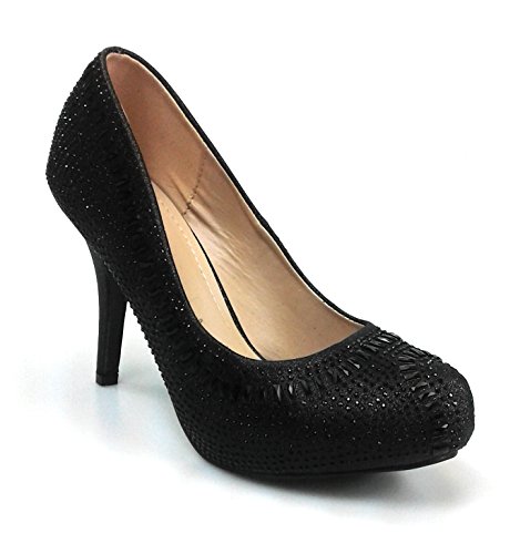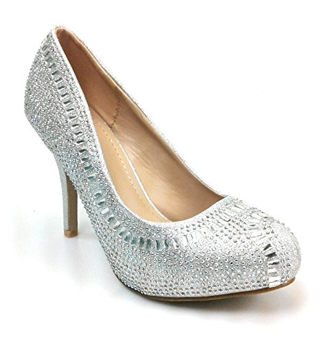 Product Description Get glammed up with these rhinestone studded sparkling heels, featuring an almond toe, a glitter mesh material, diamond and round shape rhinestones, a slightly padded insole for comfort 0