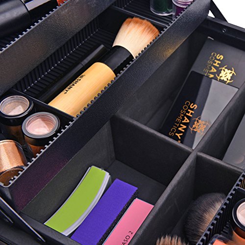 Feature : Storage solution for makeup accessories, Nail polish, cosmetics brushes, Nail arts and more / SHANY makeup train cases are used as cosmetics travel bag, Makeup holder and displays / Spacious compartment makes this case best in its class - fits a hair dryer, Flat Iron and etc / Made with solid aluminum and Nontoxic ABS plastics - Dust proof fabric as an interior / Added 2 easy to close latches with key locks and comfortable shoulder straps for convenient
