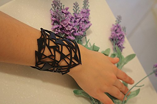 Black Leather Handmade Bracelet Cuff on Button Laser Cut Geometric Gothic Bracelet