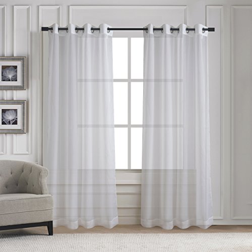 READY MADE: Package includes 2 panels of 54” wide x 96” long sheer voile curtains, total width is 108” (274cm x 243cm). Thread trimmed and wrinkle free, all the panels have been ironed before packaging.