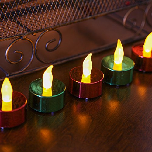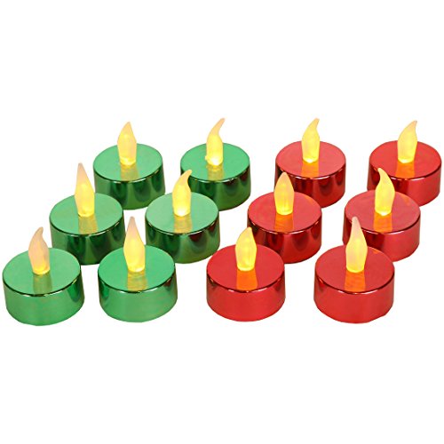 Home-X Holiday Flameless Tealight Votives. (Set of 12, 6 Green and 6 Red)